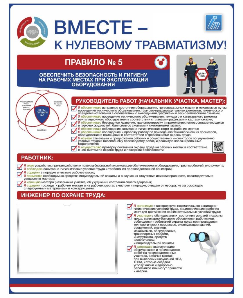 - Обеспечивать безопасность и гигиену на рабочих местах, на рабочих местах, при работе со станками и оборудованием.