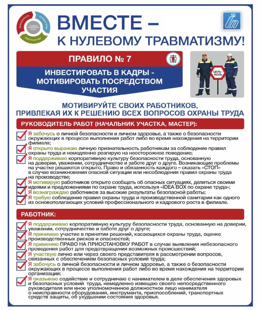 Семь «золотых правил» концепции «Нулевого травматизма»: